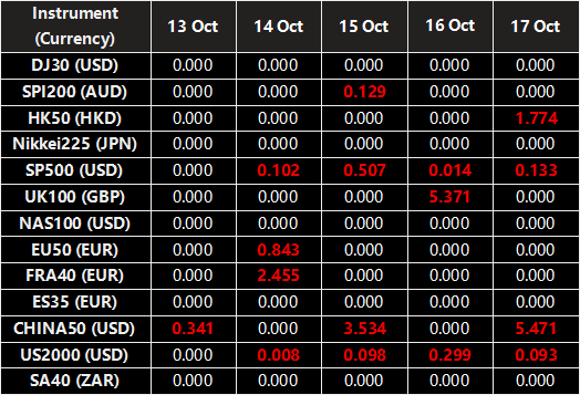 Please be advised that the dividends of the following index CFDs will be adjusted by upcoming ex-dividend dates. The comment for trading index CFDs will be in the following format “Div&<Product Name>&<Net Volume>” which show in the balance after the close of the day before the dividend payment date.